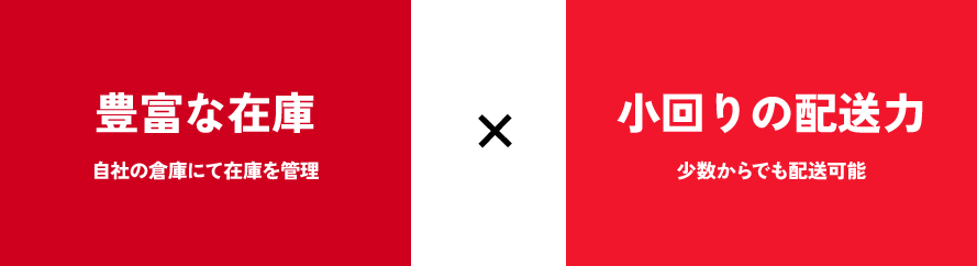 在庫管理・加工・配送まで自社で一貫対応できる体制を整え、お客様の「すぐ欲しい」に応えます。